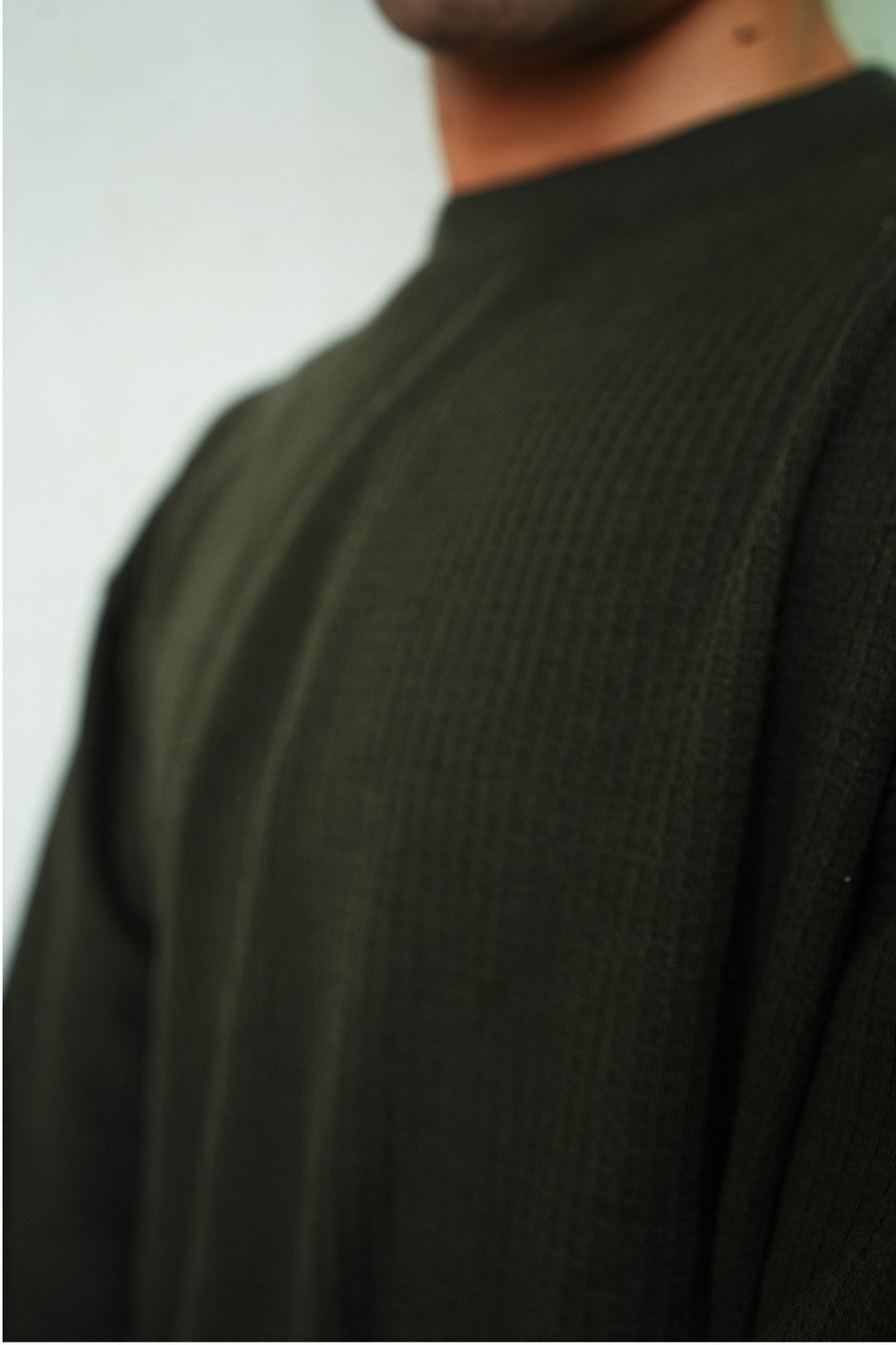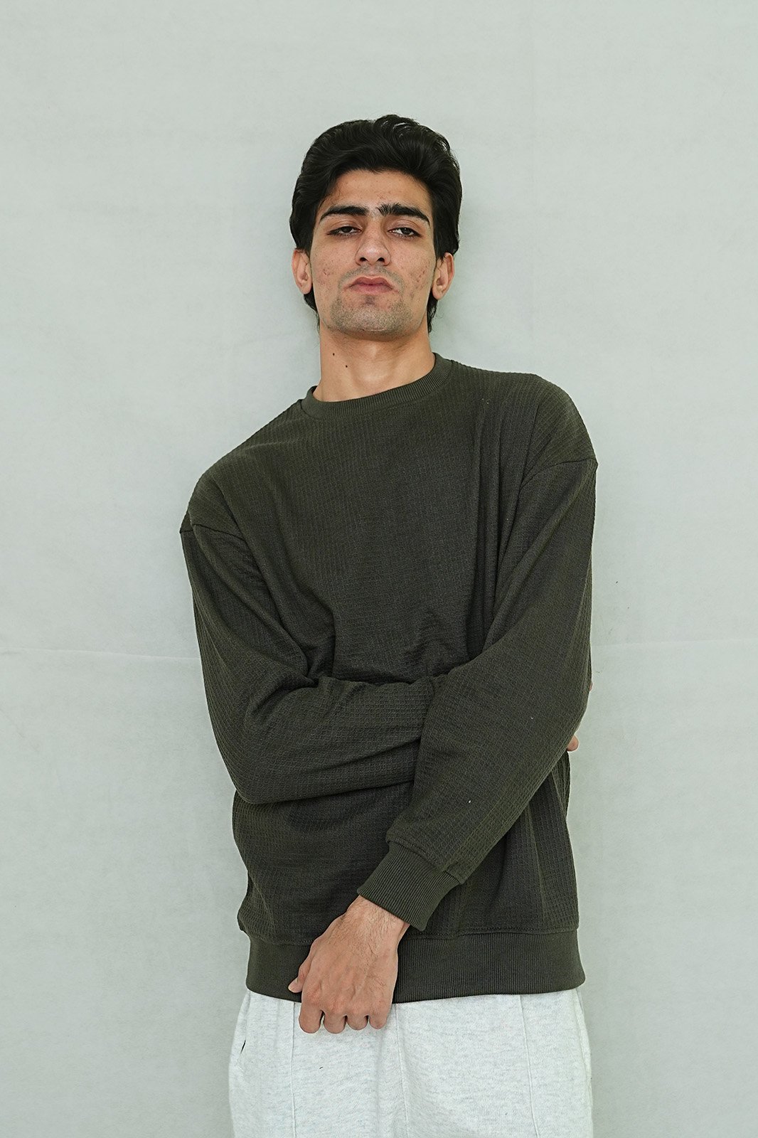 Be the first to review “Poshaq Drop-Shoulder Textured Knit T-Shirt – Olive Green” Cancel reply
