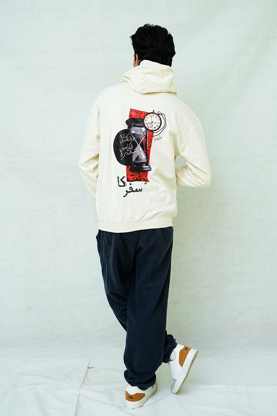 Stay warm and stylish with the Poshaq “Waqt Ka Safar” Hoodie, crafted from premium cotton fleece for maximum comfort. Featuring a bold back graphic inspired by the concept of time, this hoodie blends modern streetwear with cultural depth